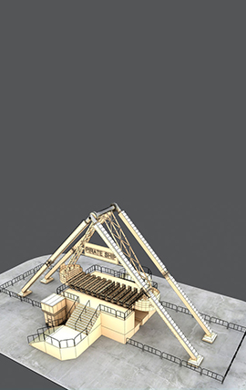 架空样式轨道铺设,圆周起伏、立交跑道都可以实现的小规模过山车游乐项目。